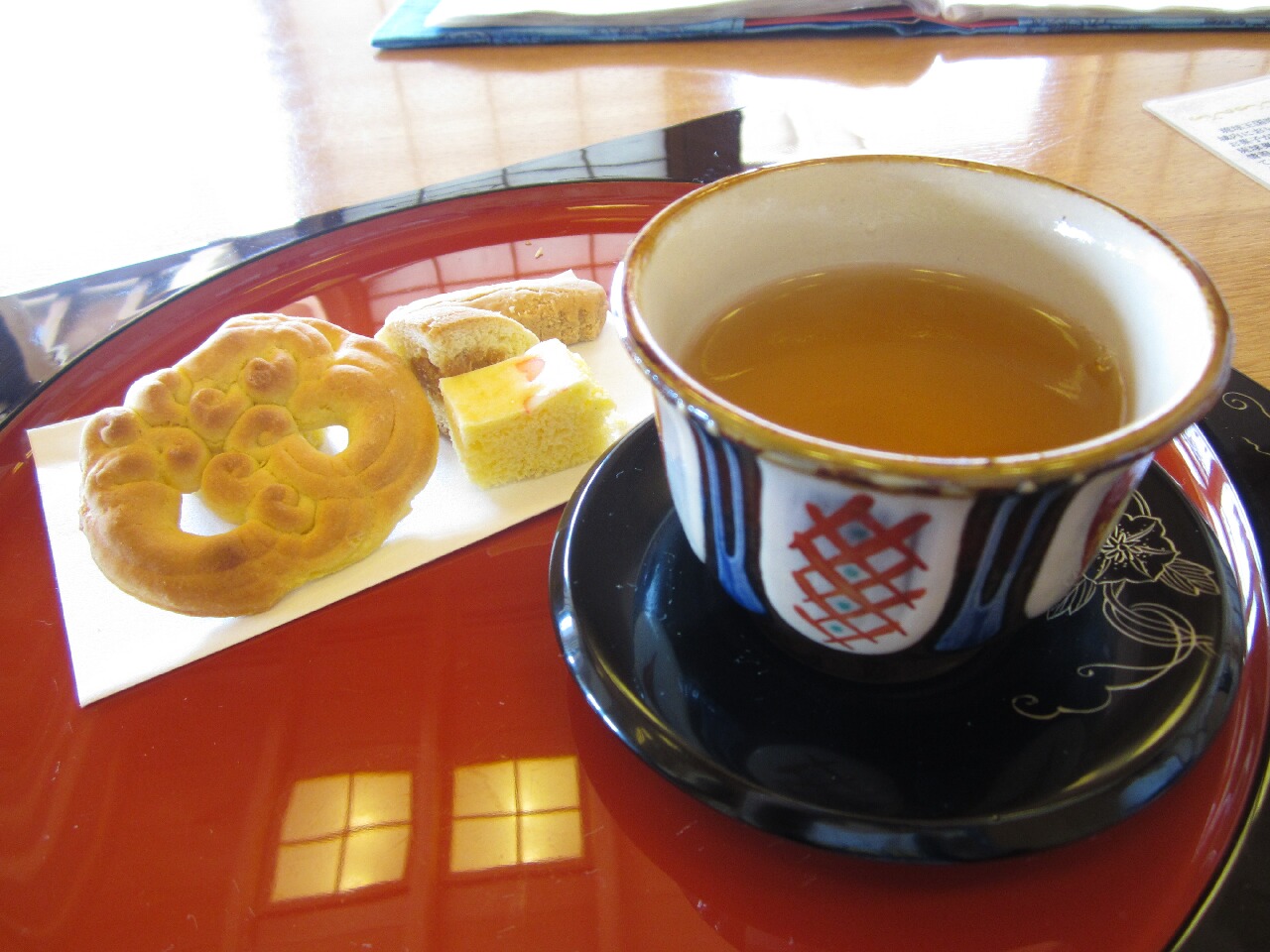 せっかくなので鎖之間でお茶してきました。ここはほんと良い休憩スポットだよなぁ。お菓子美味しいし上等のさんぴん茶飲み放題だし。