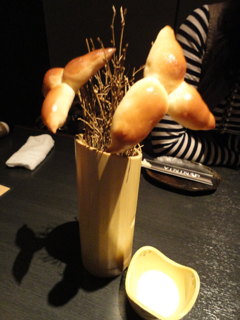 横のは、お通しで出てきた手裏剣型のグリッシーニ。グリッシーニというか、干からびたテーブルロールの味がしたのは気のせいかな・・・。まぁ、形が面白いってことで(汗)