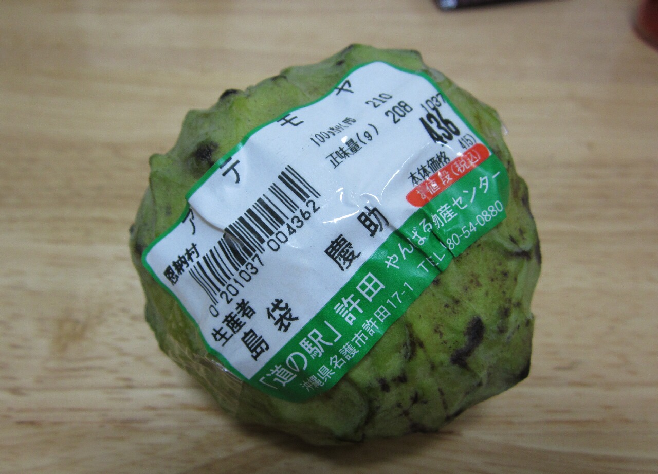 たまたま、道の駅許田に売ってたから、お!と思って買ってみた。いろんな生産者さんのがあったけど、この島袋さんのアテモヤがサイズ同じでも高かったな、アテモヤ名人か島袋さんw