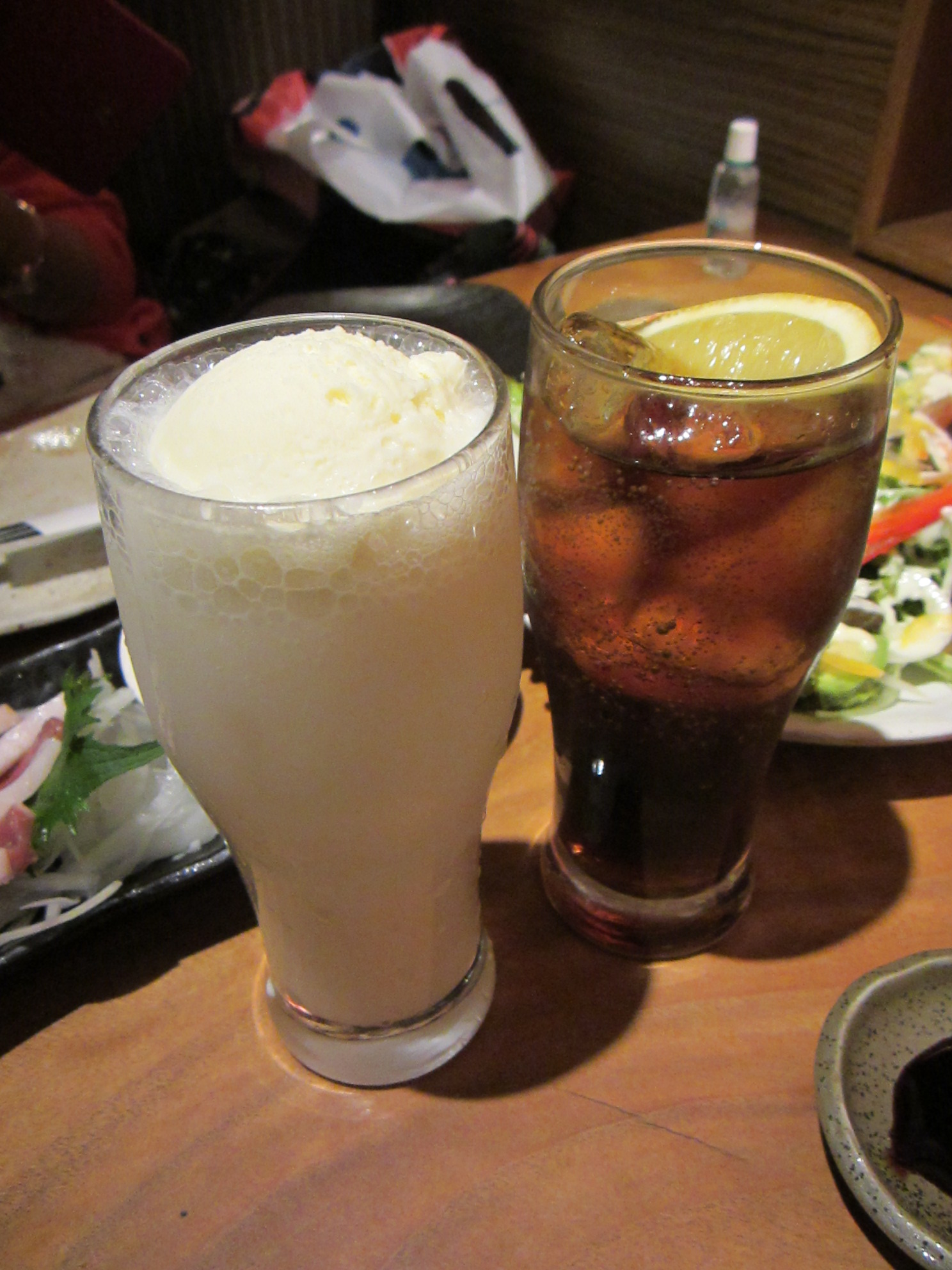 これ、左が直江ドリンク(カルピスソーダアイスのせ)で右が黒田コークハイです。