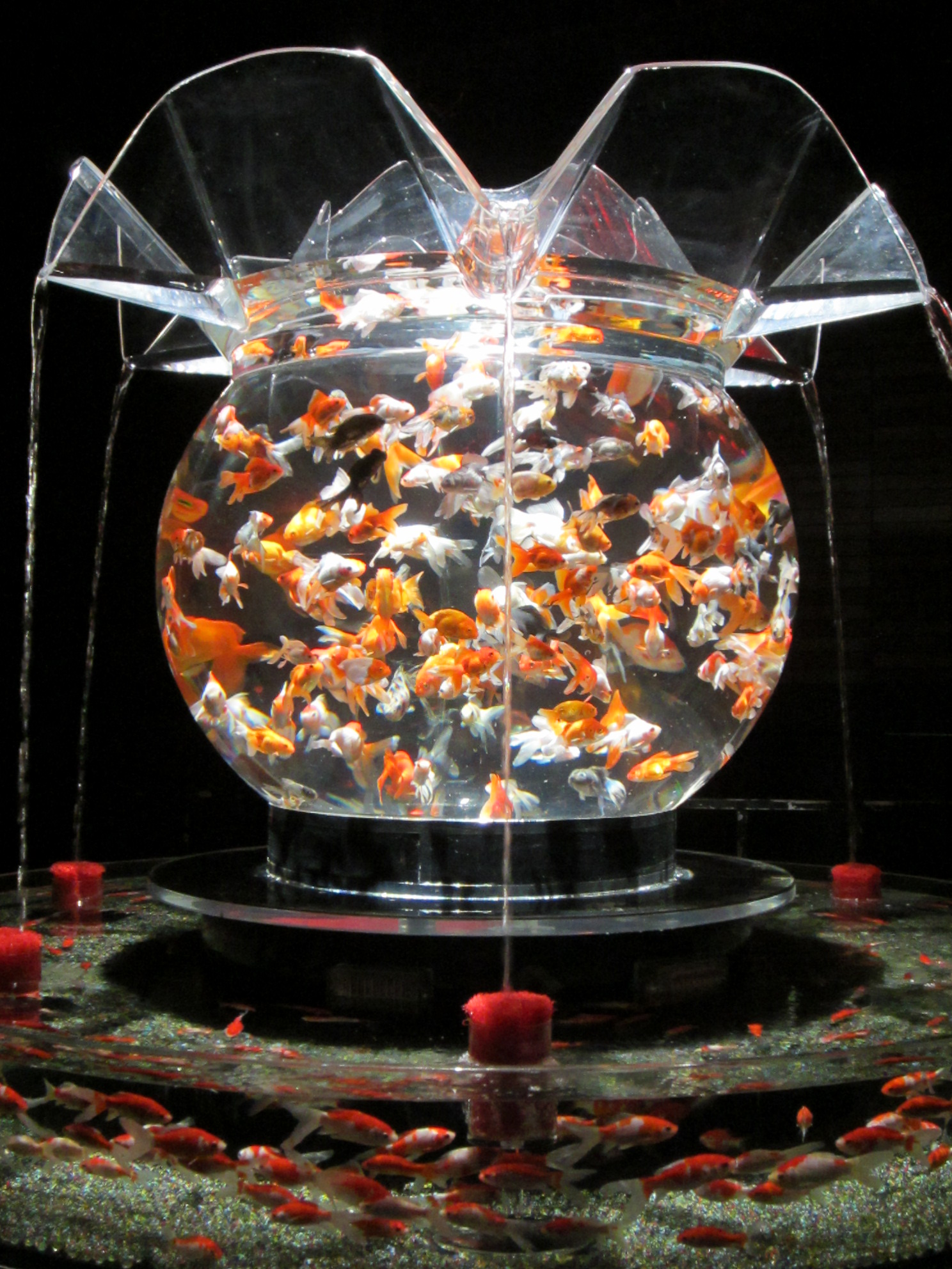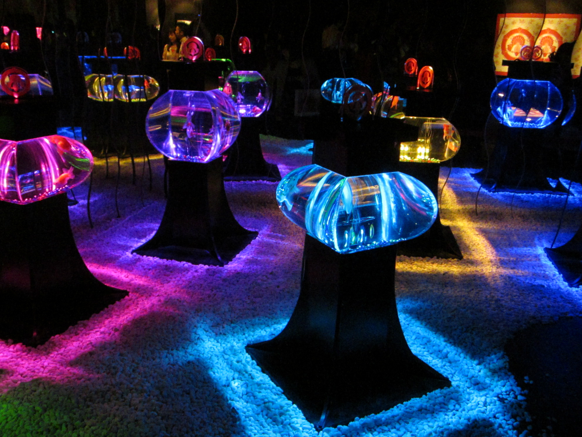 あ、上の画像の金魚鉢、「花魁」って作品なんですが、かなーり巨大な鉢の中で無数の金魚が泳ぐという・・・。花魁とか、花町のイメージってやっぱ金魚なんだねぇ。
