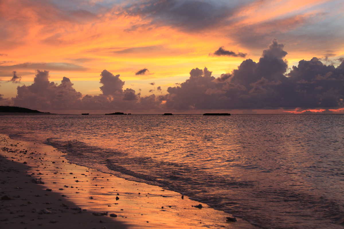 サンセットを観にきたのに、ゆんたくしてて見逃してしまうとこだったニシ浜の夕焼け。