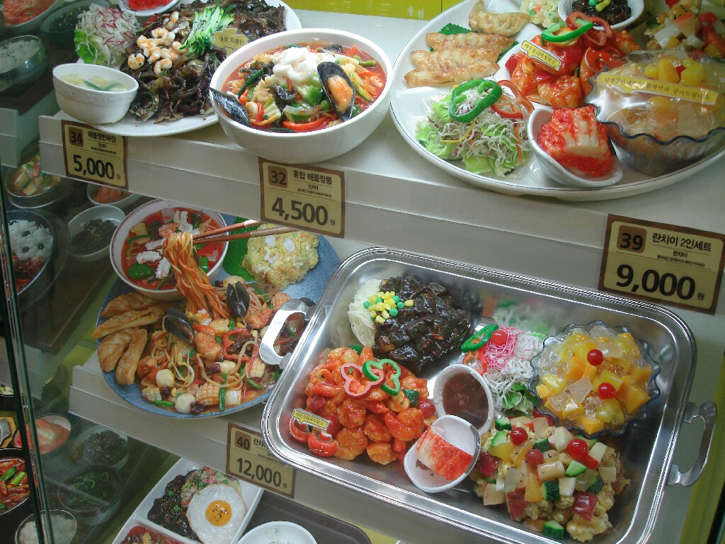 2日目の午前中にあっちの、いわゆるディスカウントストアのホームプラスに行ったけど、韓国の家庭の一般的な生活用品とか食材が安くて揃っててすっごい楽しい!ホットッミックスとかコチュジャンとか伝統茶とか、欲しいものは土産屋で買うより断然安くてオススメ。ついつい歯磨き粉とか生活用品にも手を出しちまった(笑)だってこっちで買うより安いし。荷物の量考えんでいいならもっと買い込むのにな~。で、日本と同じように、このホームプラスの中にもレストランやフードコートがあるんですが、このフードコートのメニューの食サンが凄まじい!衝撃写真!