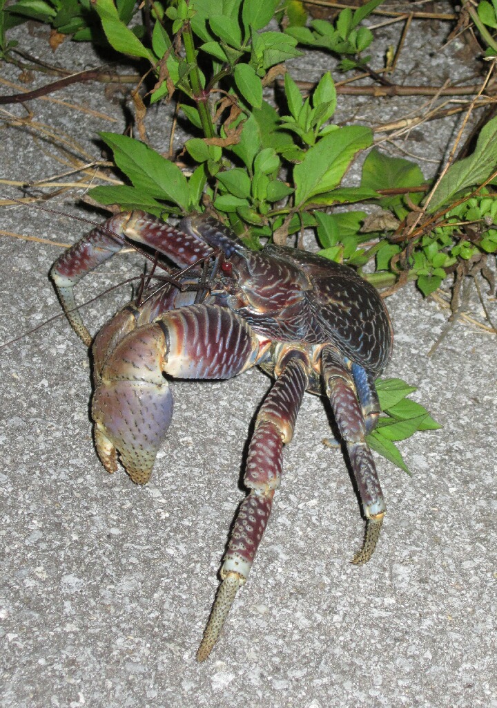 んで、夜の探険、おめあてはヤシガニ君ですだ!夜になると普通に道を歩いているというから驚きます。いや、そうじゃないよね、ヤシガニ君たちの生活圏に道路を作っちゃったんだよね、きっと・・・。