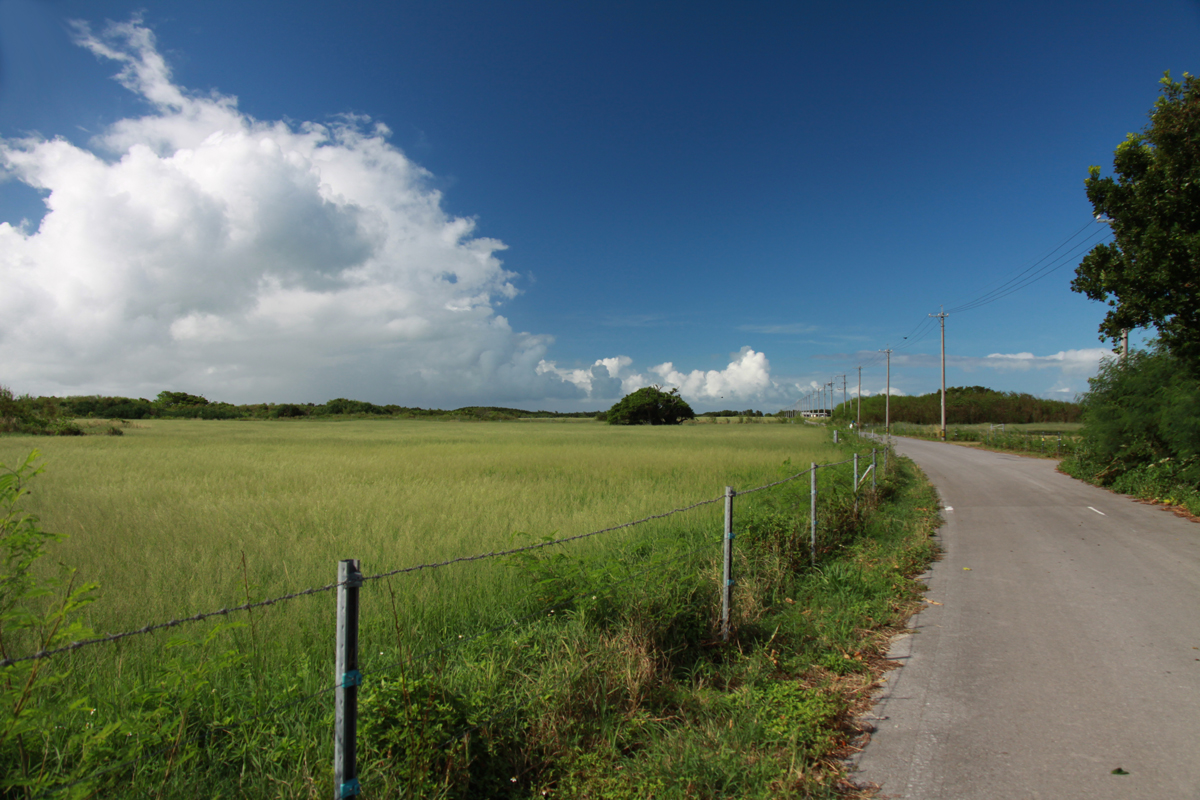 いきなり動物の話題からはじまった黒島ですが、この島、とにかくのーーんびりとしていて、緑の草原がどこまでも続く、まるで北海道のような景色なんですね。八重山の島々はどこも個性的とは聞いてたけど、なんとも牧歌的なところ。この日はスノーケルの穴場の仲本海岸で遊ぼうと思ってたんですが、やっぱり台風の影響で波が高くて泳げなかったー。なので島内サイクリング。けっこう大きな島なので1周するのはキツい。でも途中でクジャクの群れを追い回したりカラスの観察したり、ああ、牛旨そうと考えながら黒牛をなめるように眺めるのはとても楽しかったですwww