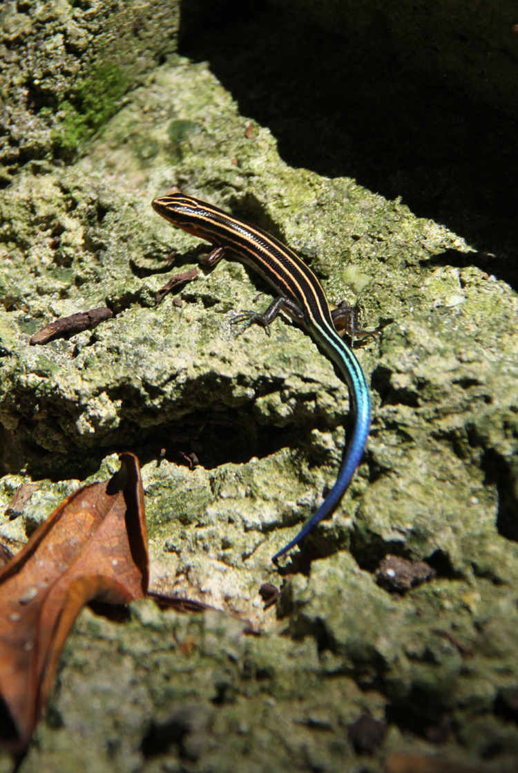 爬虫類ダメな人、いきなり画像投下してメンゴ。レインボー柄が目を引く、イシガキトカゲ君です。はじめ石垣島で発見した時は「なんだこのサイケな野郎はァ!!」とびっくらしたものですが、八重山だったらどこでもみかけることが出来ます。道端の草むらとか塀の隅っことか。この散策路でもたくさん、というか1歩足を踏み出すたんびチョロチョロと足元を横切っていくくらいいっぱい居た。うーーーん、ほんとに見事に青→黄緑→オレンジの色相になってる。すごい。