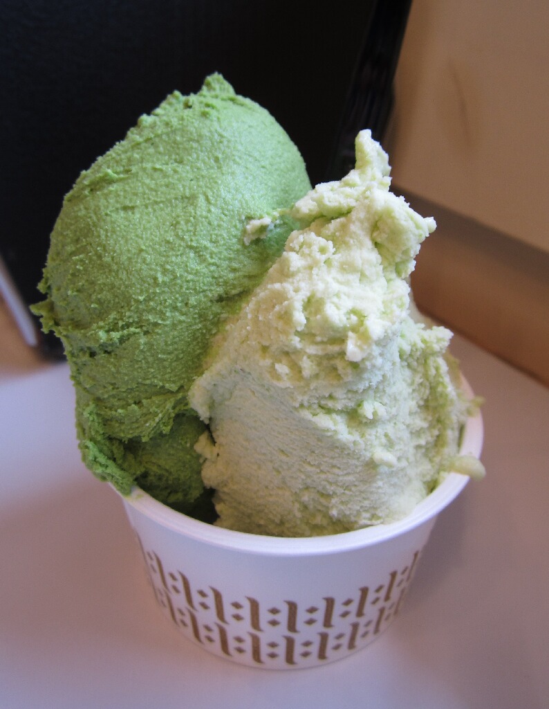 んで、冒険してみました。せっかくこんな遠くまで来たんだし。左が「濃い抹茶」、右が「アスパラ」です。・・・・アスパラ・・・・。