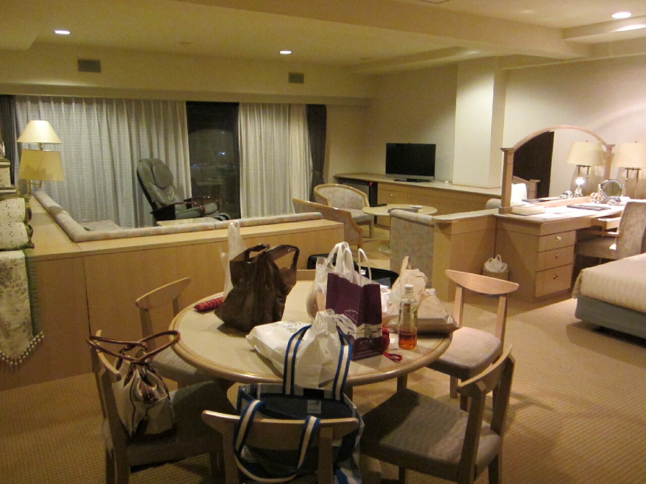 泊まったジュニアスイートのお部屋、70平米もあるってことで、広大でした(笑)広すぎて、身の置き場に困るwこのホテル、元はリゾートマンションだったということもあり、部屋にはキッチンも付いてましたー、使わないけど。あとはマッサージチェアがあって感動した。個人的には、USENが部屋に付いてたのはかなりポイント高いですぞ(笑)夜はユーロビート聞きながら酒盛りでシタww