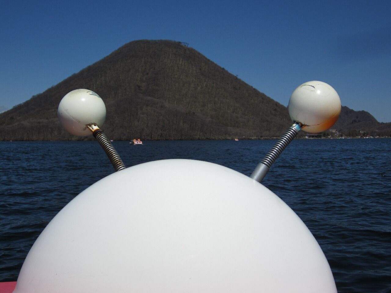 車窓ならぬ、ボート窓からの眺め。ブルブル揺れまくる触角の間から見える榛名富士の画がとにかくシュールでしたw
