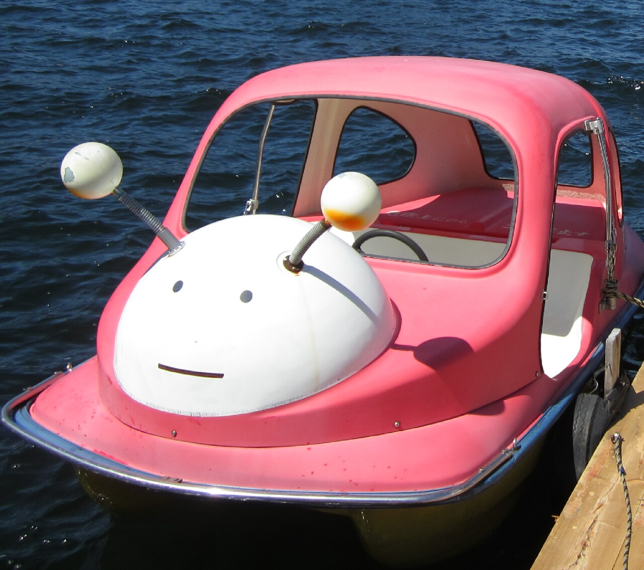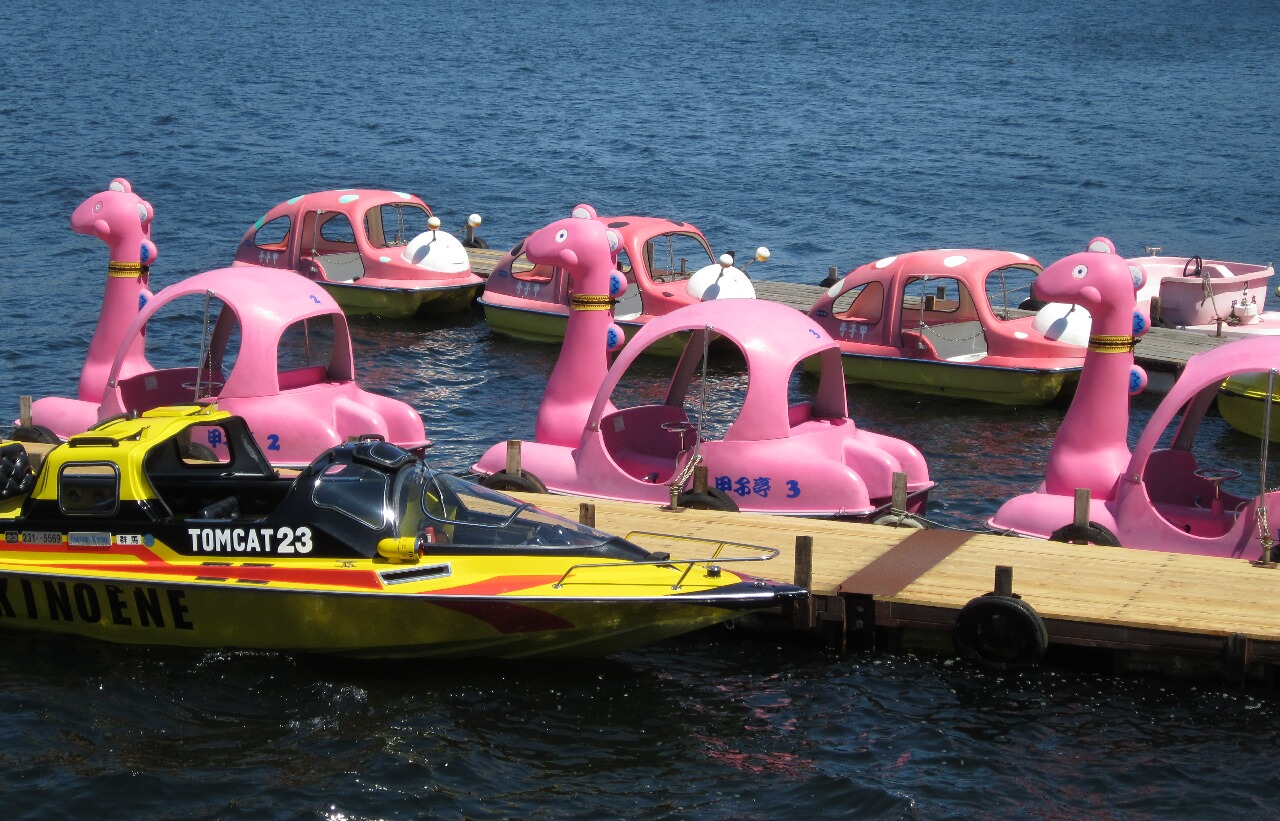見ろ!このアンニュイな表情!!「アンニュイ」って単語がここまでしっくりくる表情を他に知らない(笑)こやつを運転するのが夢だったんじゃ!(小さな夢です)しかも、この頭から生えてる触角、バネ仕様なので漕いでるとブルブルする(笑)私的にはこやつのことを「ピンクのイモムシ」と呼んでたんですが、正式名称は「レディバード」(てんとう虫のこと)らしい。この日は結構風があって波もあったので、風の干渉受けるってことで他のボートをすすめられたけど、ここは押し通しました(笑)実際、ピンクのネッシー号に乗ったお姉さん二人組みが風に流されて大変なことになってたwあと、ボート小屋のおっちゃんに「あのピンクのイモムシがいい!」と言ったらナチュラルに「レディバードね」と言われましたwうぅ・・・だっててんとう虫には見えんよ・・。
