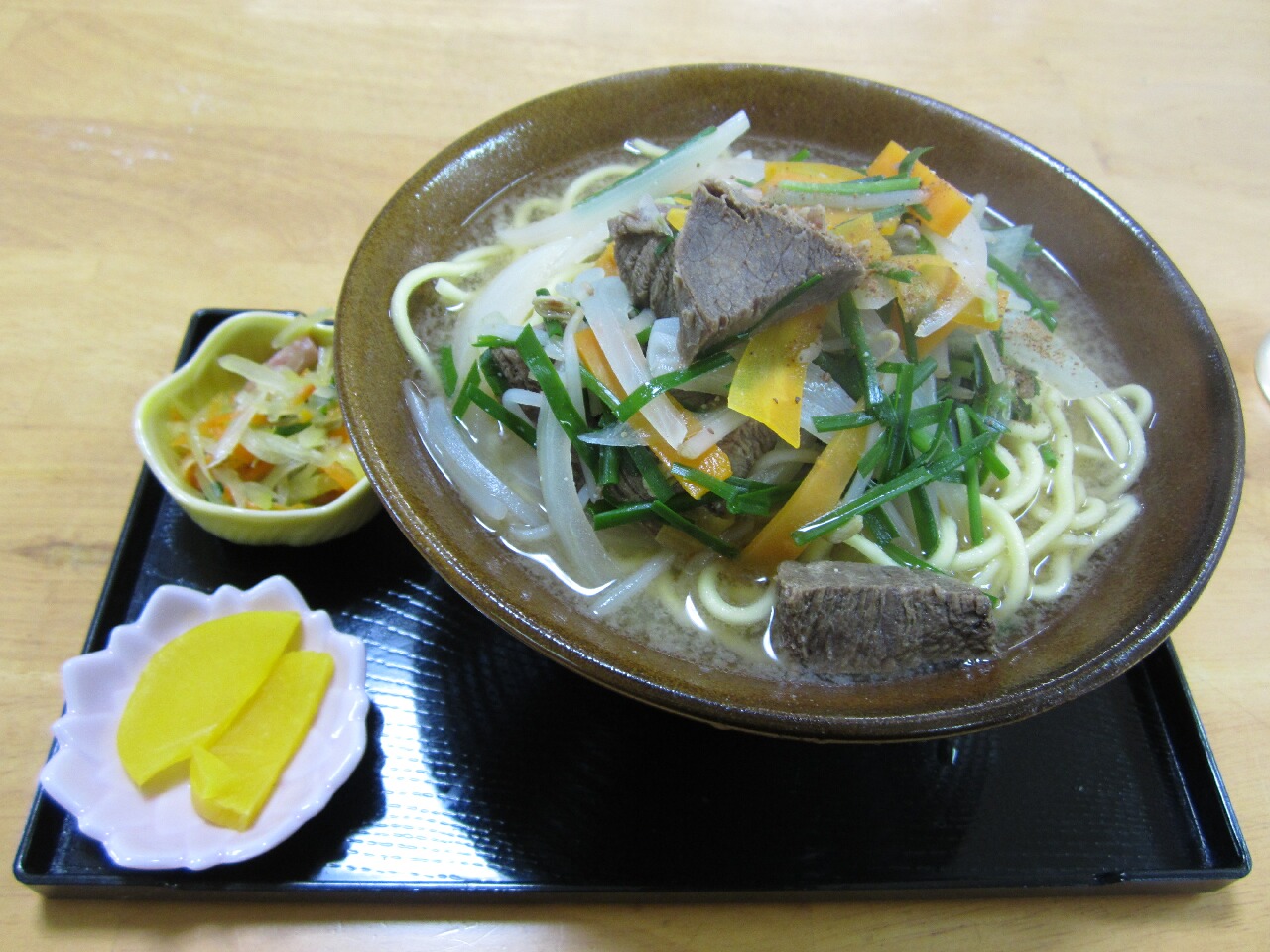 泊まった民宿がやってる食堂で食べた牛そばです。黒島といえば牛が有名なんで牛そば。