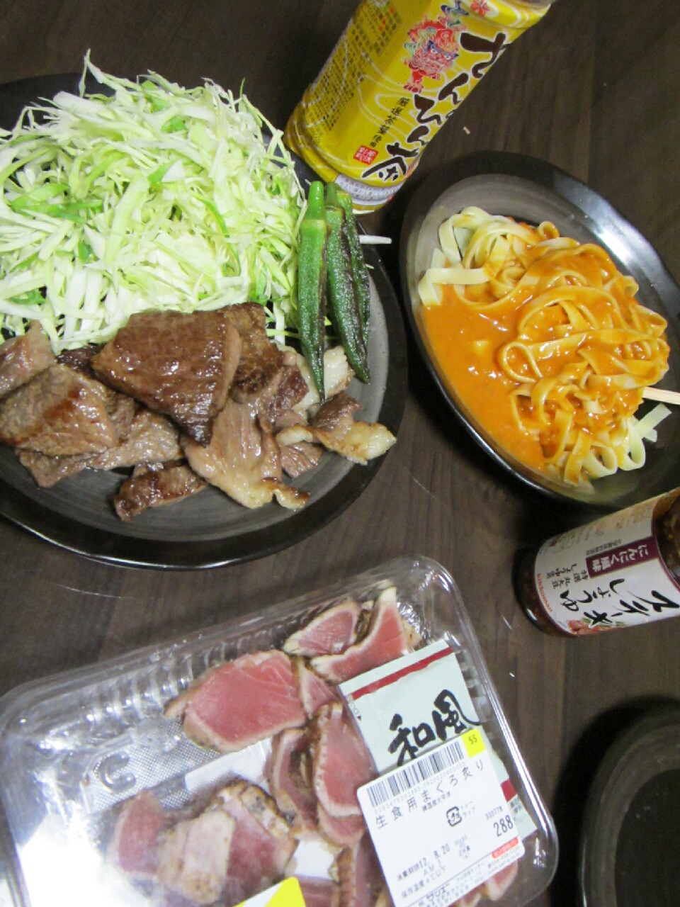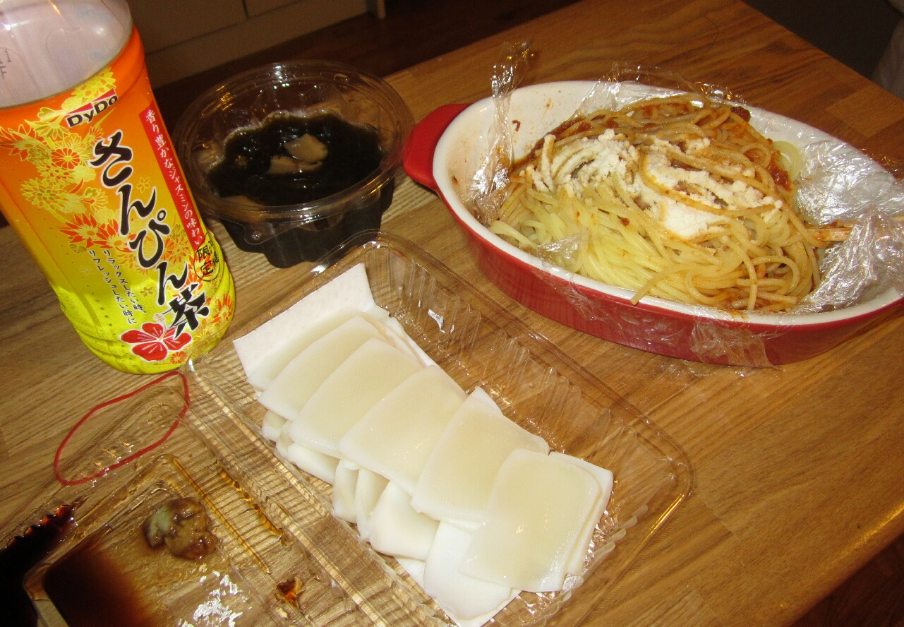 でもマグロがあまりにも安いのでついつい買ってしまった・・・。あと主食代わりのパスタ・・・。これは持参してたやつだけど。