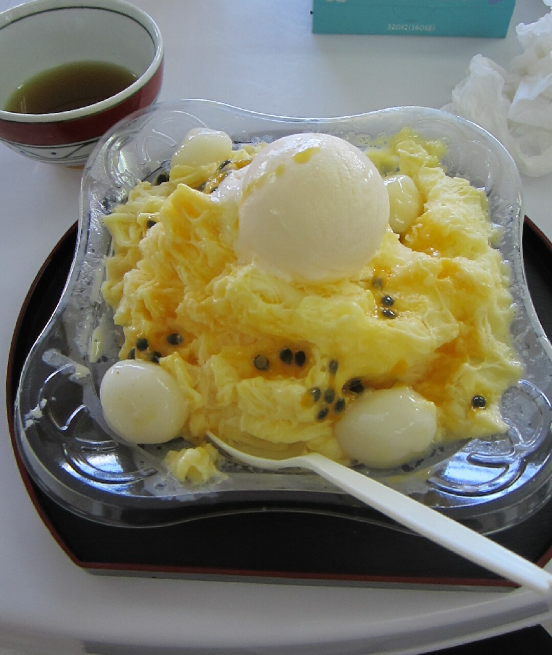 左上のはお茶じゃなくて、サトウキビの搾り汁なんです。無心になって雪花氷がっついてたら店のおじぃが持ってきてくれた。