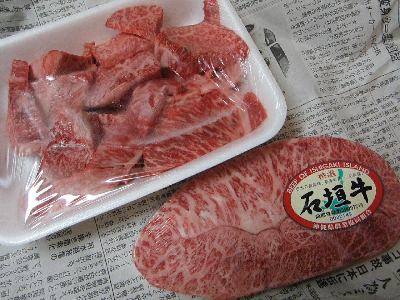 ひとり旅なんで外食して石垣牛焼肉もいーかなーとか思ったけど、なんか切ないよね・・・ってことで、公設市場の中の石垣牛の卸屋さんに行ってみたら、めちゃくちゃ安くGET出来たwwwヒャハー!!