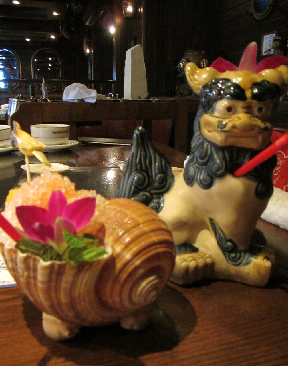 最後っちゅーことで、ハジケたもの2人そろって飲んでます(笑)手前のカクテルの器、貝殻なんだよvかわええv奥のシーサーは胸にストローぶっ刺すという・・・(汗)でもこのシーサーの器は、もらって帰れるから旅の思い出にはもってこいですよ。