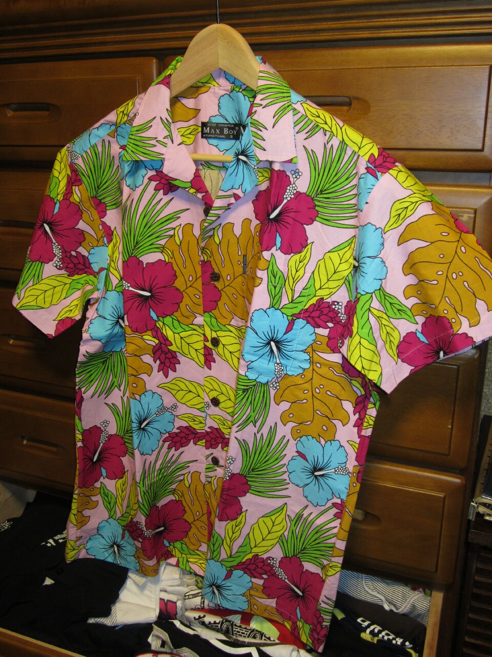 たしか、「そういやアロハって1枚も持ってないな」→「折角石垣島に来たんだから1枚くらい買おう」→「どうせアロハ買うなら一番派手なやつにしよう」という脳内展開だったような・・・・・・・・そしてこのサイケな柄にしたんだなw