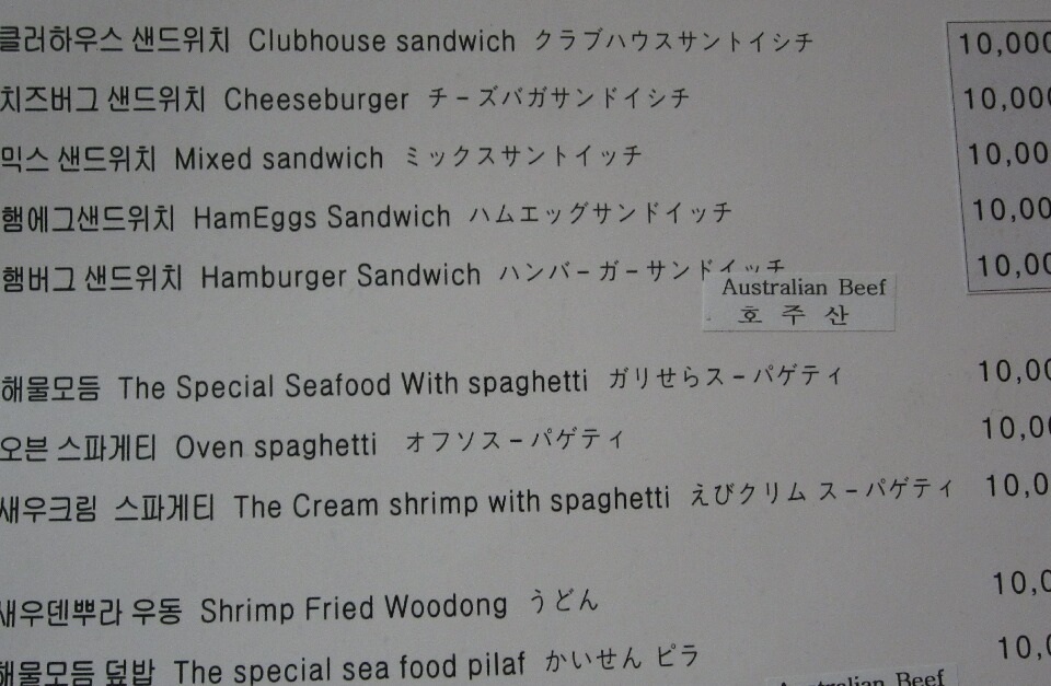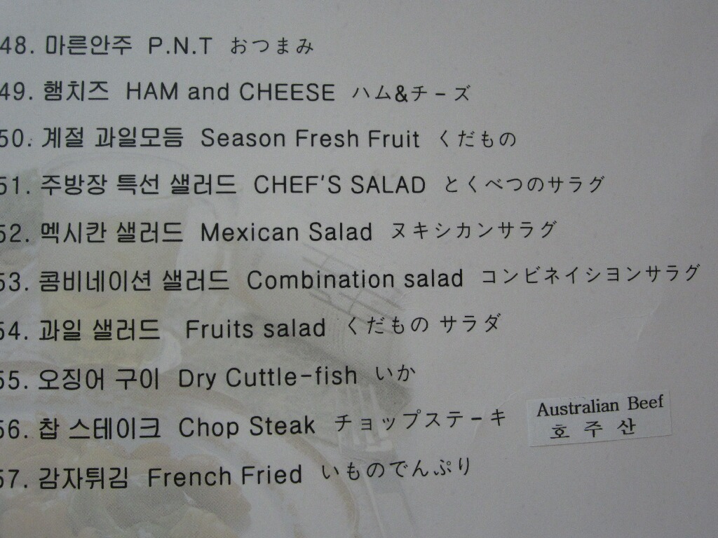 コレ、泊まった釜山観光ホテルのルームサービスのメニューなんですが、実に興味深いです(笑)