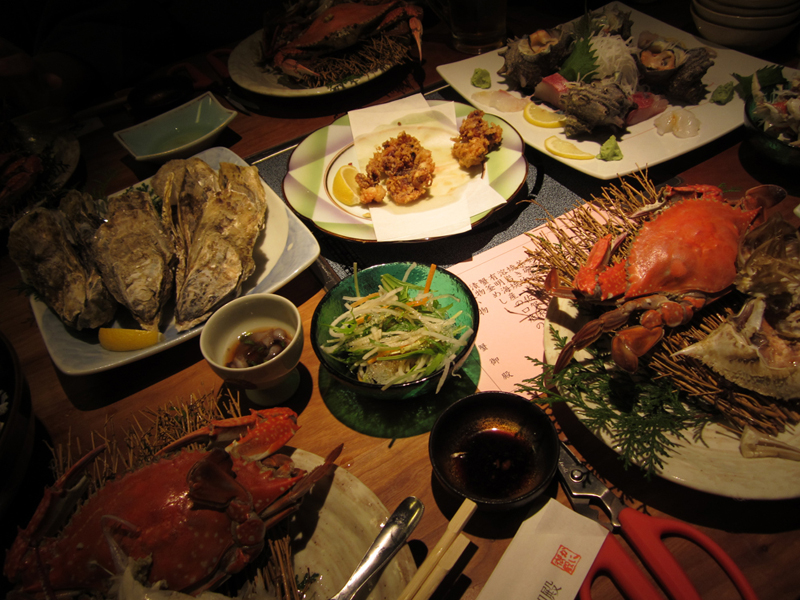 んで、このお宿がなんでそんなにいいのか、料理ですね!それにつきる。めちゃくちゃ豪華やった!さすが御殿!(笑)ただひとつ難を言うと、私カキダメなうえ若干の蟹アレルギーあるし蟹あんまり好きじゃない、という(死)のっけから茹で蟹2杯出てカキの蒸し焼き出て焼き蟹出て佐賀牛出て(これ美味しかったv)、あとはお造りにたこの唐揚げ等等とどめが蟹飯。蟹好きにはたまらないでしょうそうでしょう、私1杯でもうアウトだたアルよ(死)途中から足むしってぽいぽい投げてたヨ。いや、でもさすがブランド竹崎蟹、身が甘くて美味しかったです。料理も全体通して美味しかったv朝食もすごかったです。朝っぱらから鯛のおかしら付き出たぞ(汗)正月料理ってのもあったんだろうけど、イカとイクラのお造りとか、朝から食えるかーー!!もう、しばらく海鮮見たくないって思った・・・・。