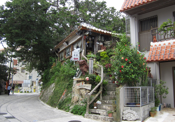 そういややちむん通り、マブヤーの映画でも一瞬出てたわwそうそう、丁度この写真のアングルで。通りには工房以外にも、オサレカフェもあって、作品でお茶ができたりと、まったーり過ごせそうでいいな!