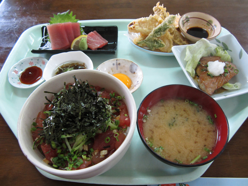 この日のお昼ご飯、泊港にあるまぐろ食堂さんですだ!まぐろ!!(哲也風に)いゆまち魚市場の奥にある、いかにもな漁港の食堂です。女子が独りメシするのには少々勇気がいるかもしれませんが、まぐろと聞いておとなしくしてられるかァ!ってかんじで突撃しました。案の定家族連れ、うみんちゅだらけな店内・・・・(笑)ゴスパンの格好で独りメシの姉ちゃんなんて私だけでしたがな(そりゃそうだ)w