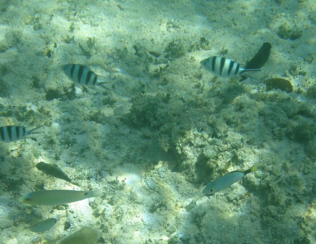 沖に出れば、まあ魚影はあるけど、チョウチョウウオとかツノダシはあんまいなかったなー。色のないスズメダイばっか。珊瑚、イソギンチャクがいないのでもちろんクマノミちゃんもいませんでした。