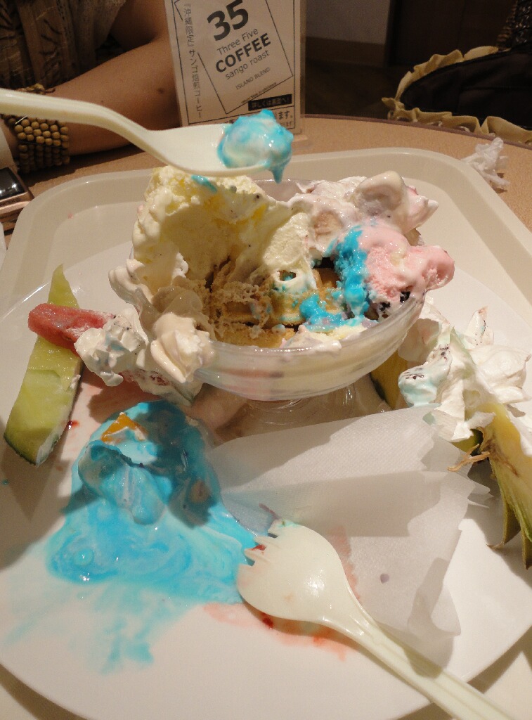 でも、おめあてだった巨大ブルーシールパフェ食べれて幸せでしたーー!次回はもいっこのおめあてのパイナップル園の巨大パイナップルパフェに挑戦したいでーす!