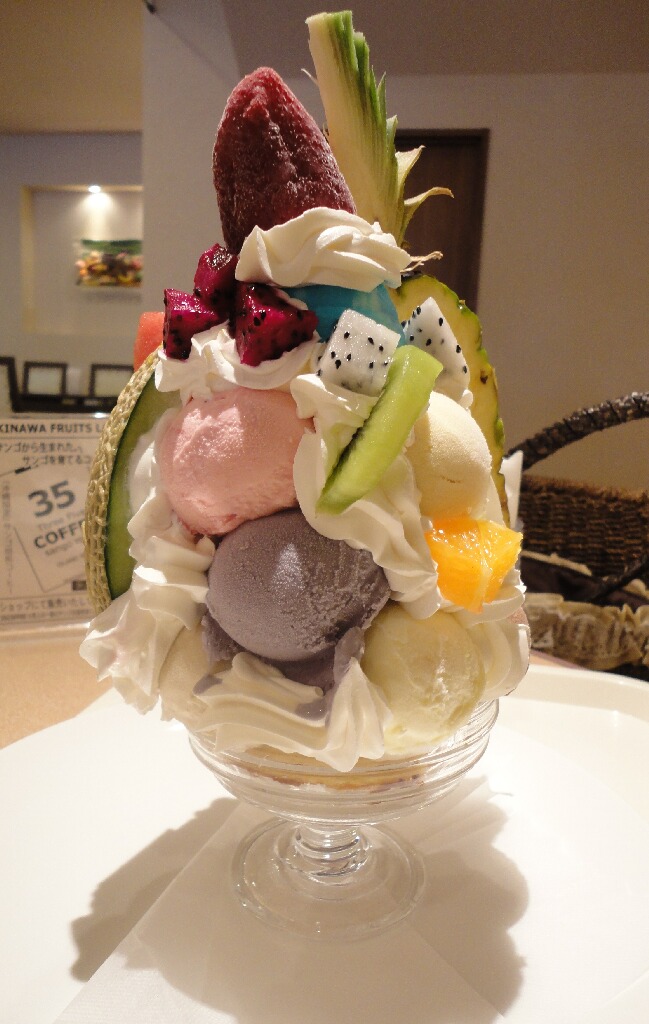 OKINAWAフルーツランドとブルーシールがコラボした巨大パフェwww30cmはあったかと。