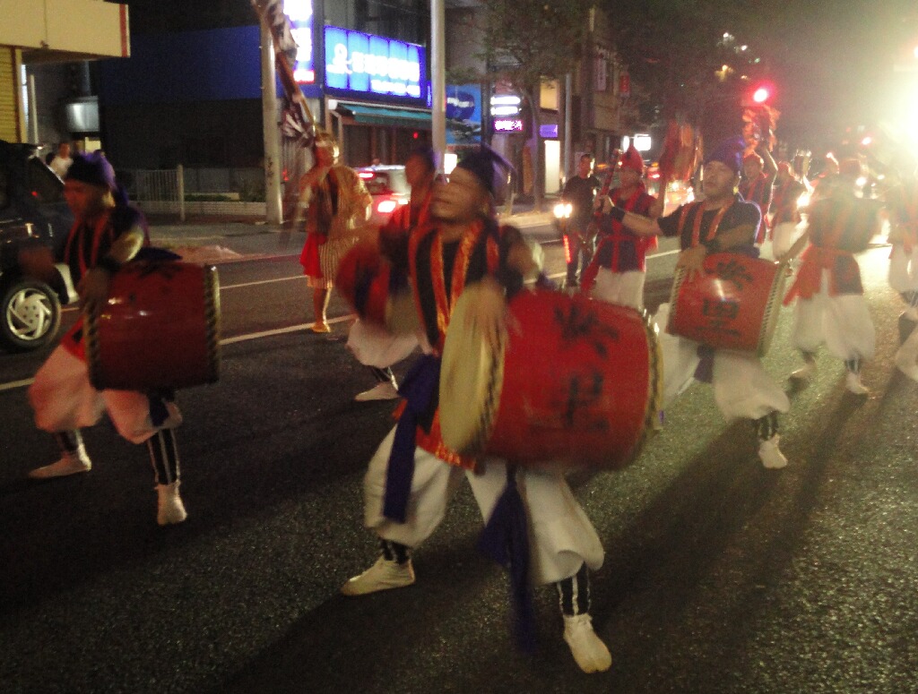 おわーっ!!道じゅねーに遭遇しましたよ!!旧盆中は結構遭遇するとか聞いてたけど、まさか那覇のど真ん中でしかも自分の泊まってるホテルの真下で遭遇するとは思ってなかった!!マジ感動ですよハイ!舞っているのは安里青年会の皆様です。すごい華麗で気合入って、しかも目の前で見れてものすごい迫力でしたーー!衣装もかっこいい!特筆すべきは、なぜかイケメンが多い(笑)よく見ると皆イケメンなんですが・・・・エイサーイケメン☆パラダイスですねぇ。そういや誰かも、道じゅねーはイケメン率高しと書いてたな。納得。しばし、一糸乱れぬ舞に酔いしれておりました。いや、このホテル泊まってヨカッタ!狭くて使い勝手悪くてアメニティ最悪だったけど(笑)