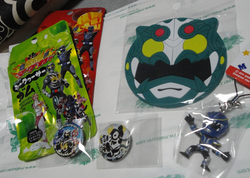 んで、今回は気は進まなかったけど(コラー)ちゃんとマブヤー、ガナシー様グッズも買いましただよ。別に嫌いなわけじゃないけど、グッズ化した時のかわいさはクーバーちゃんには敵わないので・・・。というかね、ちょうどこの時スタンプラリーやってて、¥4,500以上お買い上げで缶バッジくれるちゅーんで無理やり買ったんです白状します・・・。左のマブヤーガム、これはまぁいけた。マブヤーキャンディはレッドカードだったけど(笑)