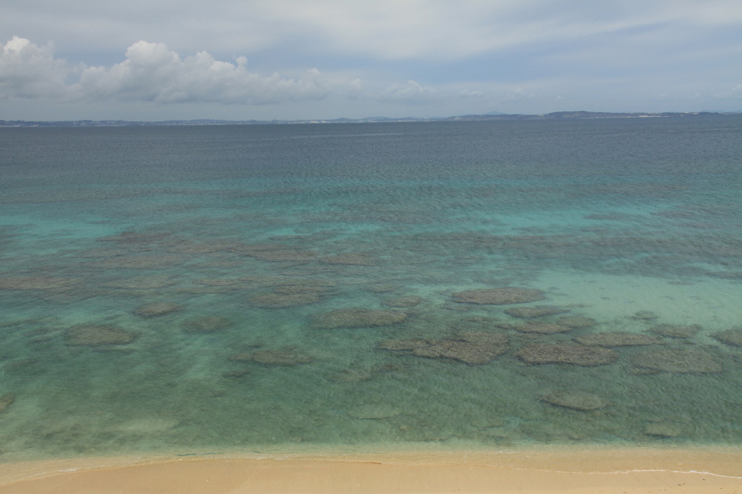 カベール岬もこれこの通り、リーフエッジに打ち寄せる波も穏やかです。と、ここで大問題が発生しました。持参してた飲料が底をついた(死)。ロマンスビーチでまったりしすぎて、島の西側を周っただけで飲み干しちゃったYOー。おまけにこの日はいわゆるてぃだかんかんな上、自転車でサバイバルロード走ってへろへろ状態だったんで、これは最近流行の熱中症になるのではと恐怖を感じた・・・。なので早々に、集落に撤収することにしまシタ。東側の浜も行きたかったけど・・・・・行ったら逝くかもしれなかったから・・・・・。久高島って、南側の集落を一歩出ると自販機なんて一切なくなるんですよねー、そこが良いっちゃ良いんだが。