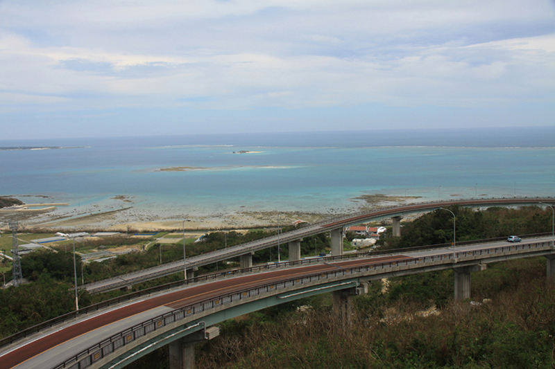 私的お気に入りスポットの西のアザナからの眺めもこれこの通り。この日はコンディションよかったんで遠く慶良間諸島も見えました!写真の一番奥にうっすらと見える大きな島が渡嘉敷島ですね、んでその横にちっさくみえるのが座間味らしい。写真じゃほとんどわかんないけど。