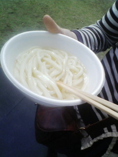 本場のうどんですぞ!しかもこれタダ!タダで1杯もらったあるよ!翌々日からある丸亀城お城祭りに出る「宮武うどん」ってところが釜の調子見るためにたまたま作ってて、そこをたまたま通りかかったらタダで食べさせてもらえたんですな。やっほい。しかも、この宮武うどんさんって幻のうどんらしい(笑)伝説の大将が打つ幻のうどん・・・・なんかすげぇな(汗)うどんなのに格調高く聞こえるのは四国クオリティだからでしょうか。でもやっぱ旨かった!麺の固さもダシの味もど真ん中やった!ぬるかったけど!このうどんはもっかい食べたいと思った!幻のうどんだからもう2度と食べることはないでしょうが・・・・。あ、お城祭りでもこれ抽選で当たった人しか食べれなかったそうな。なんたる幸運。