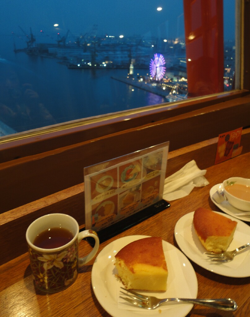 さらにところかわりまして神戸に戻ってポートタワーの展望室でティータイム。ここ廻る展望室なんですよ!回転寿司の寿司の気持ちがわかる(笑)。360度、山あり街あり港ありで飽きない!夜景きれいだしv来るなら絶対夜、というかマジックアワーから夜にかけてがオススメ!チーズケーキもまぁまぁうまかった。あと食器がチャイナチックで神戸らしいなぁって思った。ここは個人的にまた行きたいとこだナ!