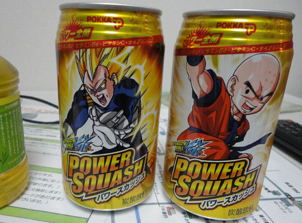 味はまぁ、想像通りのデカビタみたいな味。絵柄は他にも色々あってちゃんとピッコロさんとかフリーザ様もいた(笑)これ、琴平温泉街の自販機に普通に売ってたけど、福岡にも売ってんのかな・・・・・。フリーザ様缶欲すぃ。キャンペーン中でなんか揃えたらなんかもらえる(超なげやり)らしいよー。