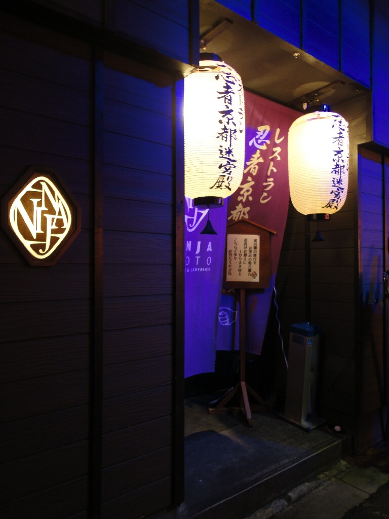 京都行ったら必ずといっていいほど行く新京極の一本奥にあって怪し過ぎる店構えになっております・・・(苦笑)でもここ、居酒屋意外にもブッフェレストランと忍者グッズ屋と迷路(なぜ)が一緒のビルに入ってるんやてね!入り口の横ではテイクアウト用のクレープも売ってた。なんなんだ、どうしたいんだこの店(笑)