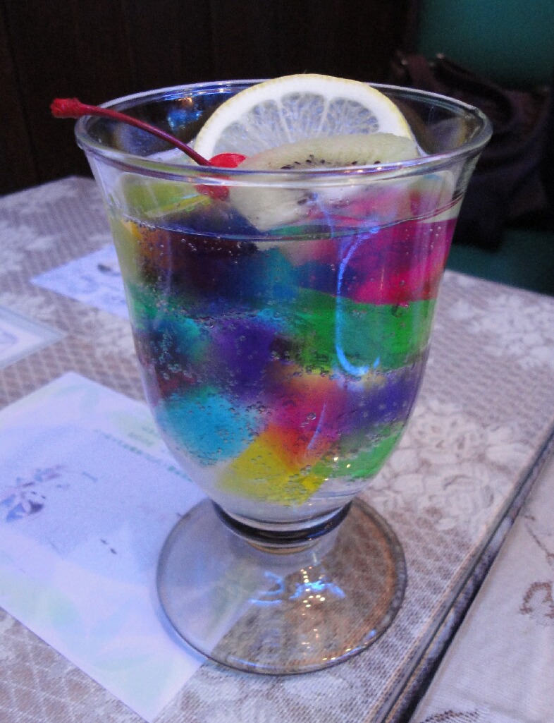 んで、弘法市のあとでソワレでティータイム。ソワレといえばコレですよね!ゼリーポンチ!やっぱ普通のソーダバージョンがきれいでいいねー。ヨーグルトバージョンの方が味は好きだけど見た目がおちるな。