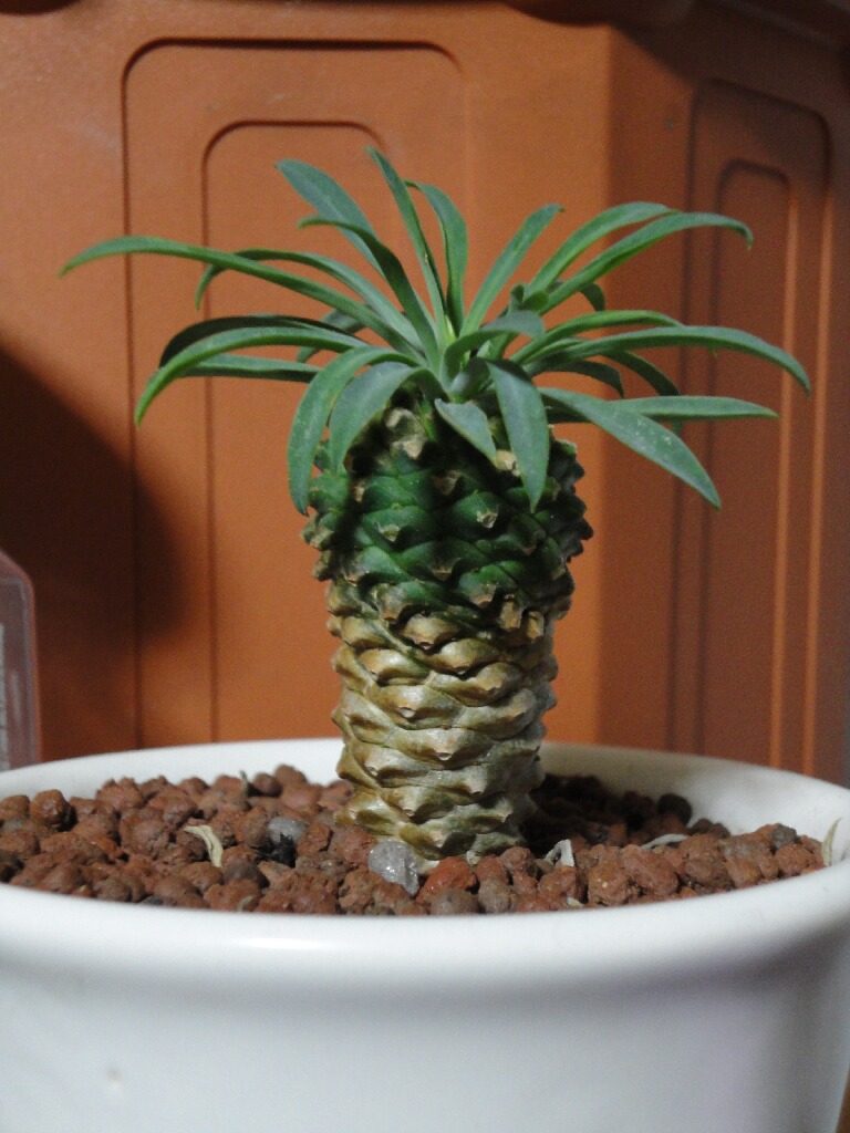 写真は、先日某オサレ雑貨屋で保護した蘇鉄麒麟の「カンベー君(仮)」です(笑)某オサレ雑貨屋、ちゃんと水やってなかっただろ、保護した時はしおしおだったぞ!なんかこのシュールな風貌に惚れてしまった・・・。これから、私が死ぬまでいっしょに生きていこうねー(笑)