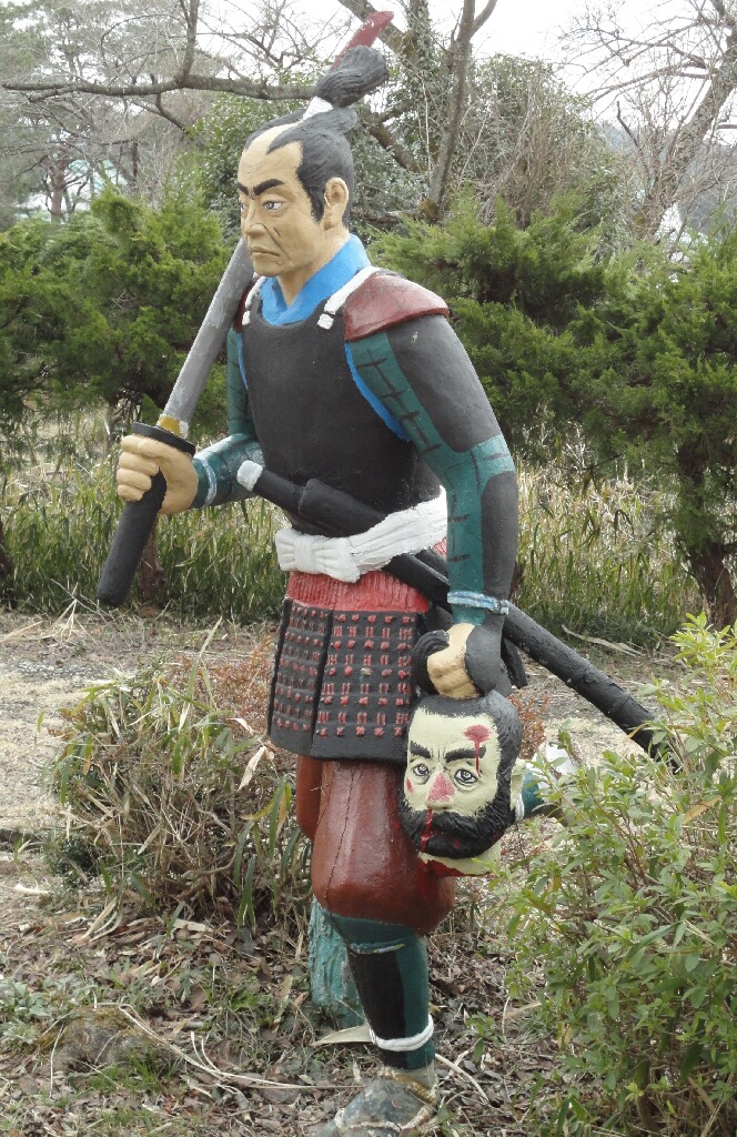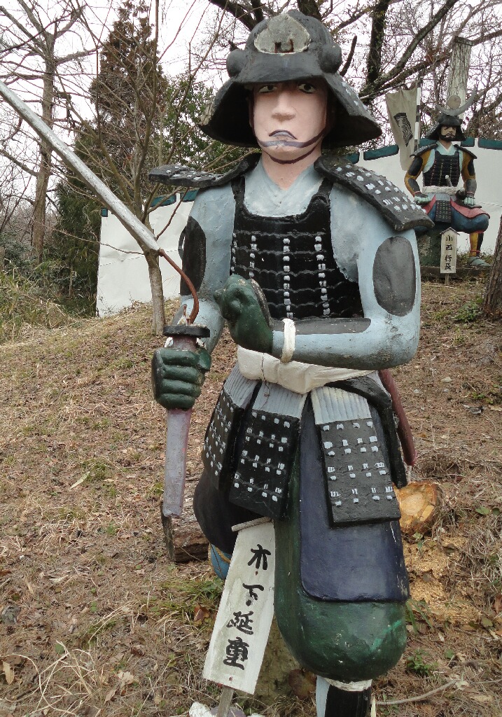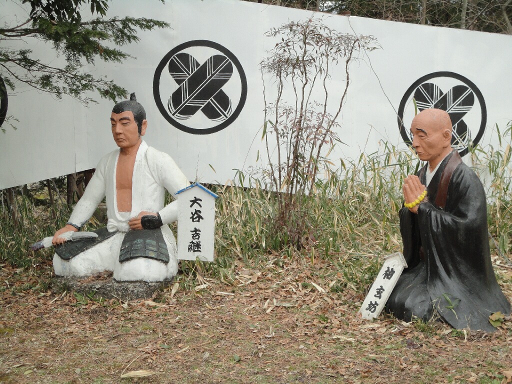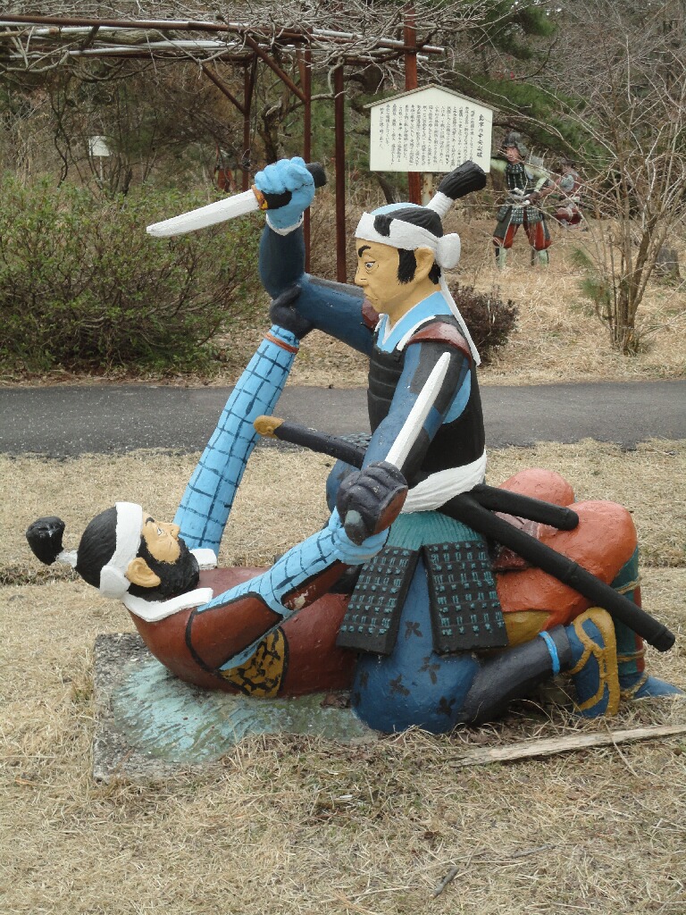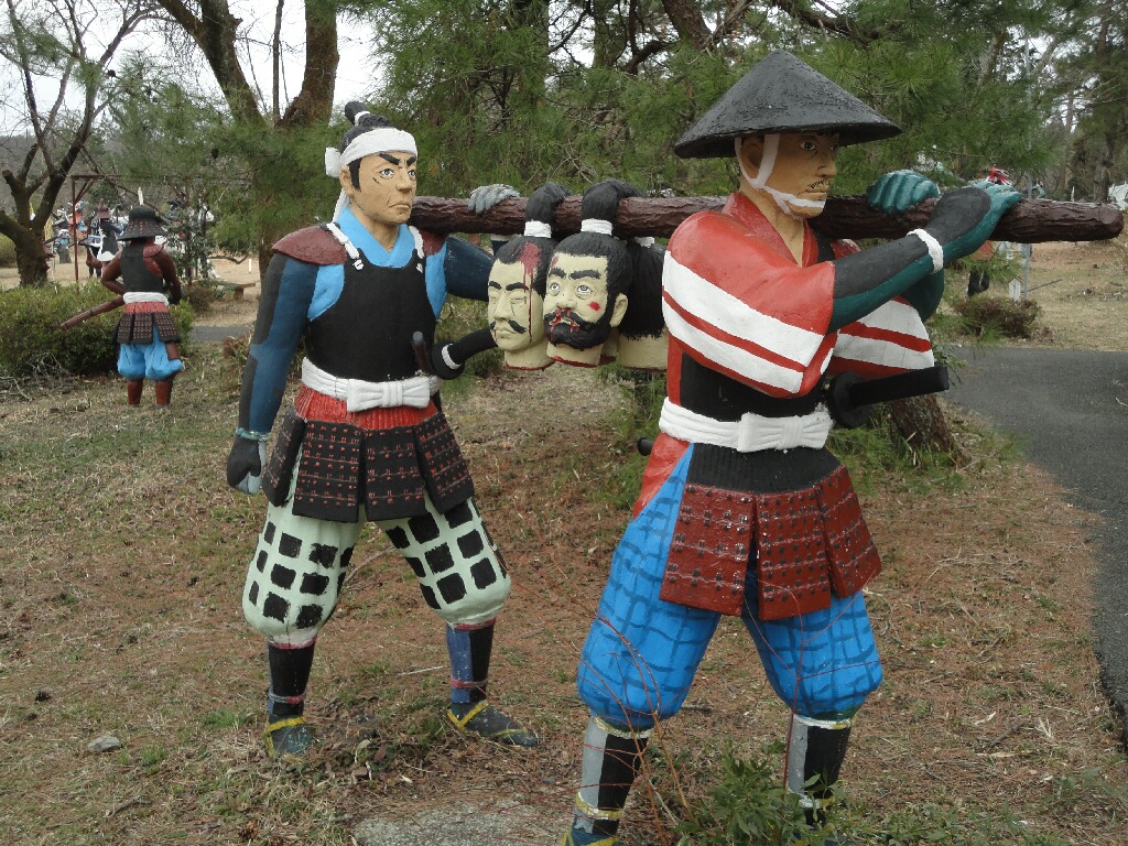 再現してるってことで、一応陣の位置が決めてあったり、ひとつひとつの人形が誰々って書いてあったり、有名エピソードを再現してたりするんですが、はっきりいって超シュールですここ。チケット買って入園してすぐに顔はめとか実際に乗れるコンクリの馬とかあってテーマパークっぽいんですがそこから50m先は異次元空間です(笑)1600年にタイムスリップしたみたい!!、とかそんな夢のあるもんじゃなくて、言葉に言い表せないカオスな空間になってます。