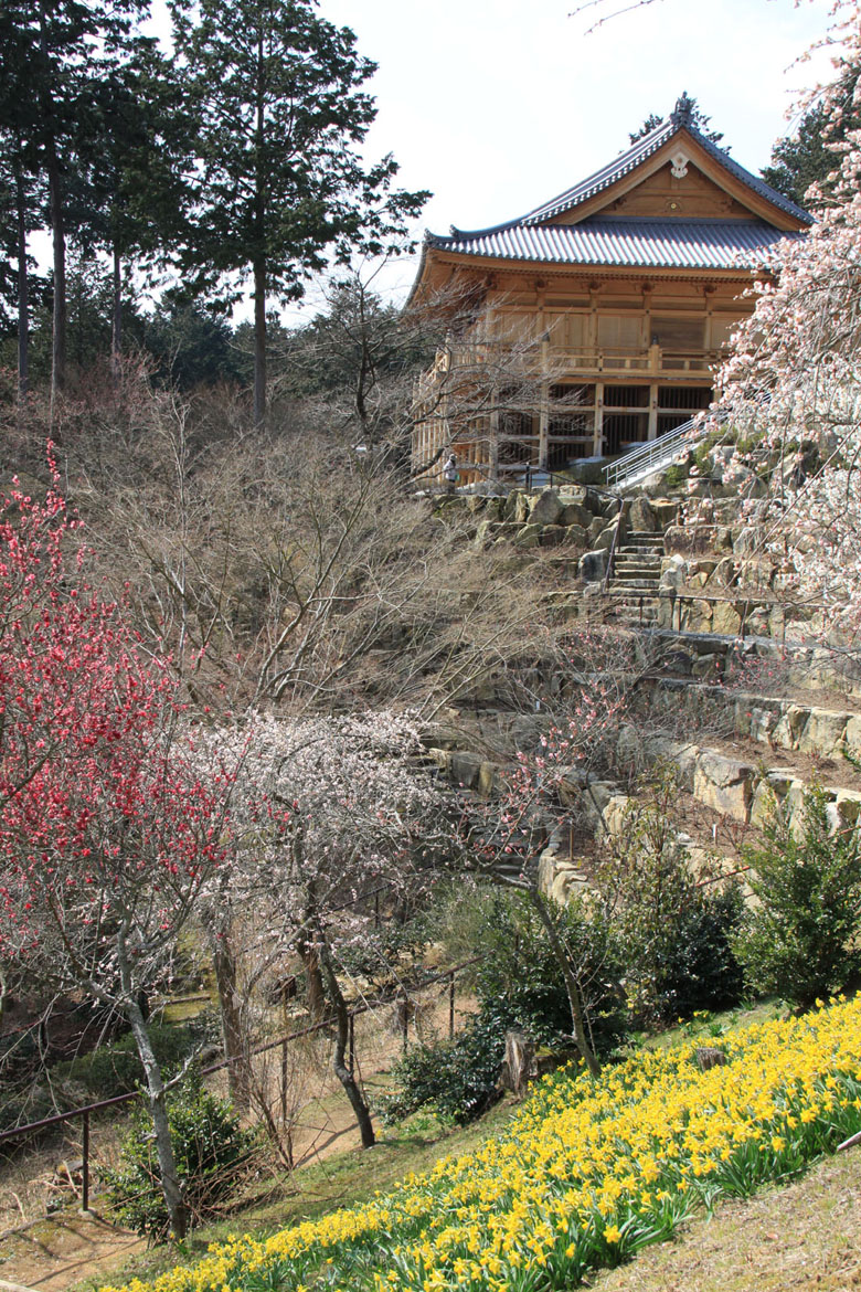 前に一度訪れたことのある石山寺ですが、ここは京都中心からだったら乗換え&徒歩で1時間程なんで行き易いとこかな。このお寺、広大な敷地だけど、四季の花があちこちに植えられてて年中お花を楽しめるんですね。前回5月に来た時は菖蒲と藤としゃくなげが満開だったな。今回は梅と水仙と寒桜が咲いとりました。もうちょっとしたら桜が満開でそりゃあキレイだろうなぁー。そうそう、前回は確か源氏物語のイベントがあってて人もけっこう多かったけど、今回は震災の影響なのか人はほとんど居なかったなー。まぁもともとそんなに観光客がこぞって来るような所ではないだろうけど。