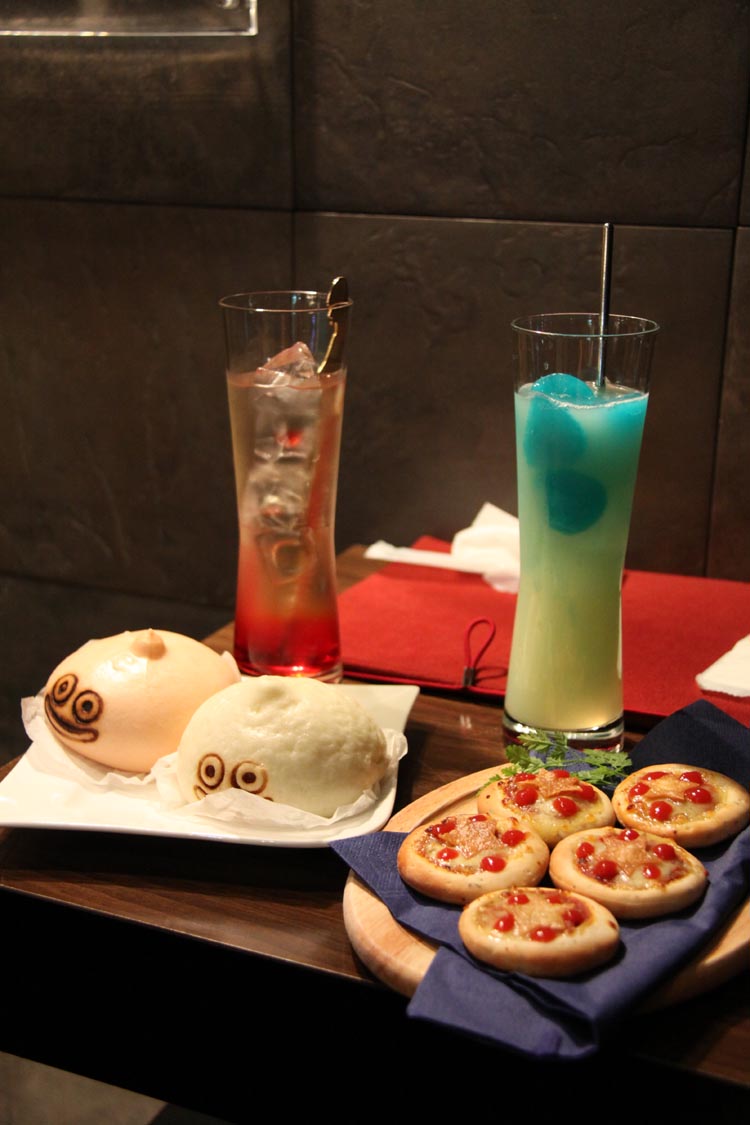 そして、愛らしい外見とうらはらに不味いです(笑)久しぶりにこんな不味い肉まん食ったな(苦笑)かわいいからvで許されるレベルではない、と思った・・・。あと、その横のピザも、まぁ期待はしてなかったけど、期待しなくてよかった(笑)こういう場所なんで味には期待してなかったけど、もうちょっとどうにかできなかったものか・・・。でもドリンクは結構美味かった。私が頼んだマヒャドブルーは芸も凝ってて、カクテル混ぜる時に店員さんと一緒に「マヒャド!」って唱えないといけないのは一体なんの嫌がらせでスカ?ww魔法の名前がついたドリンクは全部そうらしいねw