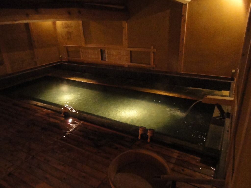 で、これが大湯。写真じゃわかりにくいけど、ここかなり大きい!古くは伊達家の人達、その後は湯治客がみんなでわいわい入ってたお風呂だそう。確かにつめて入れば1クラスくらい入りそうだ・・・。面白いことに、蔵湯も大湯も脱衣場と風呂場が一体構造になってて、風呂釜の横の広いスペースで脱いでそのまま入るってかんじは初めてだったなぁー。たしかシャワーとかもなかったわ。いや、それでこその歴史ある湯治場ですな!この大湯も広いうえに天井も高いんで流れ出る温泉の音を聞きながらまったーり出来てイイです。湯治しながら当時に思いをはせたり・・・・(くだらない(死))