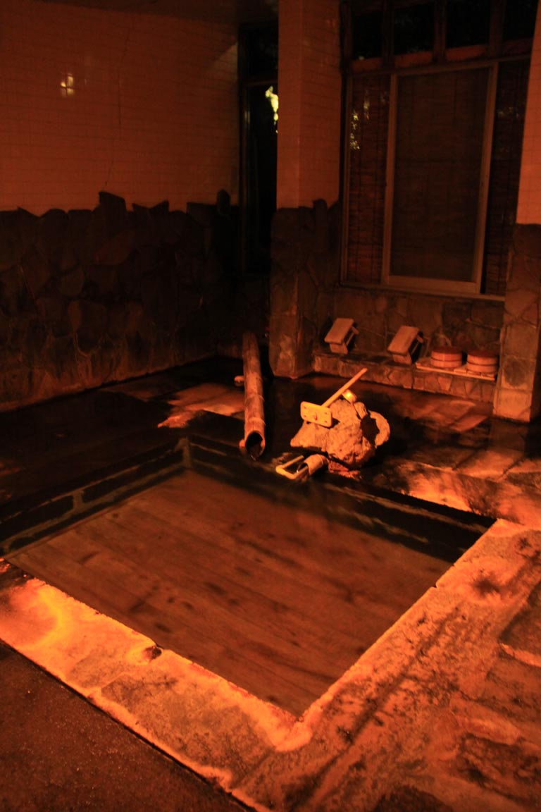で、これが新湯。その他与謝野さんとか芥川さんとか名だたる文人墨客の皆さんが入ったとか。そんな由緒正しいお風呂にわたくしも僭越ながら入らせて頂きましたwwというかね、この新湯、夜はもんのすごい真っ暗で女1人で入るのは結構勇気いるよ(死)しかもこの風呂、建物の中でも離れの方にあって、その先行き止まりで夜の廃校みたいな風情なんで恐ろしかった・・・・(涙)朝入った時は、木漏れ日で湯船がキラキラしててすごいよかったけど。