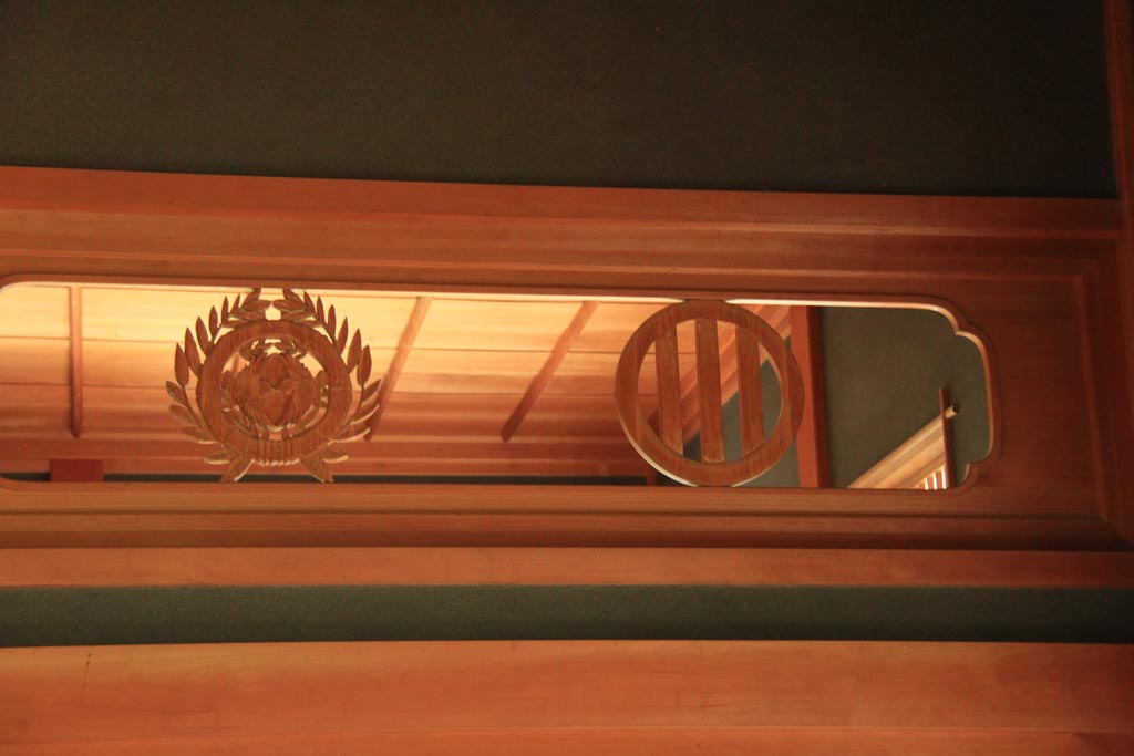 欄間も伊達家の家紋!この家紋使用していいのは松島の瑞巌寺とここ不忘閣さんだけとか。竹に雀彫るの大変だったろうなぁ。