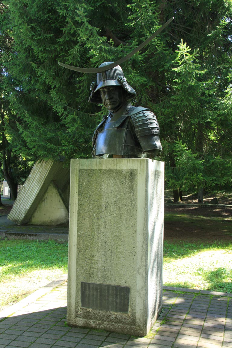 ちなみに横の写真、青葉城跡にあるあの有名な政宗像じゃなくって、仙台市博物館の裏にあった胸像。あんな人が通りそうにないとこにナゼ・・・?