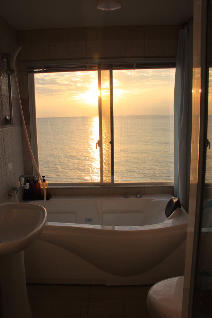 オーシャンフロント2ってとこだったけど、ここのウリは海が見えるジャグジー付きってとこですな。ただし一応カーテン閉めないと外から丸見えです(笑)割と低い建物なんで堤防沿い散歩してる米軍さんとかランニングしてる米軍さんとかダイビング帰りの(以下略)からは丸見えです(汗)しかも折角のジャグジーなのに夜10時以降は騒音になるんで使えんときた。北谷に泊まってそんな早くに宿に撤収する奴はいないですぜ、サニーズさーん。