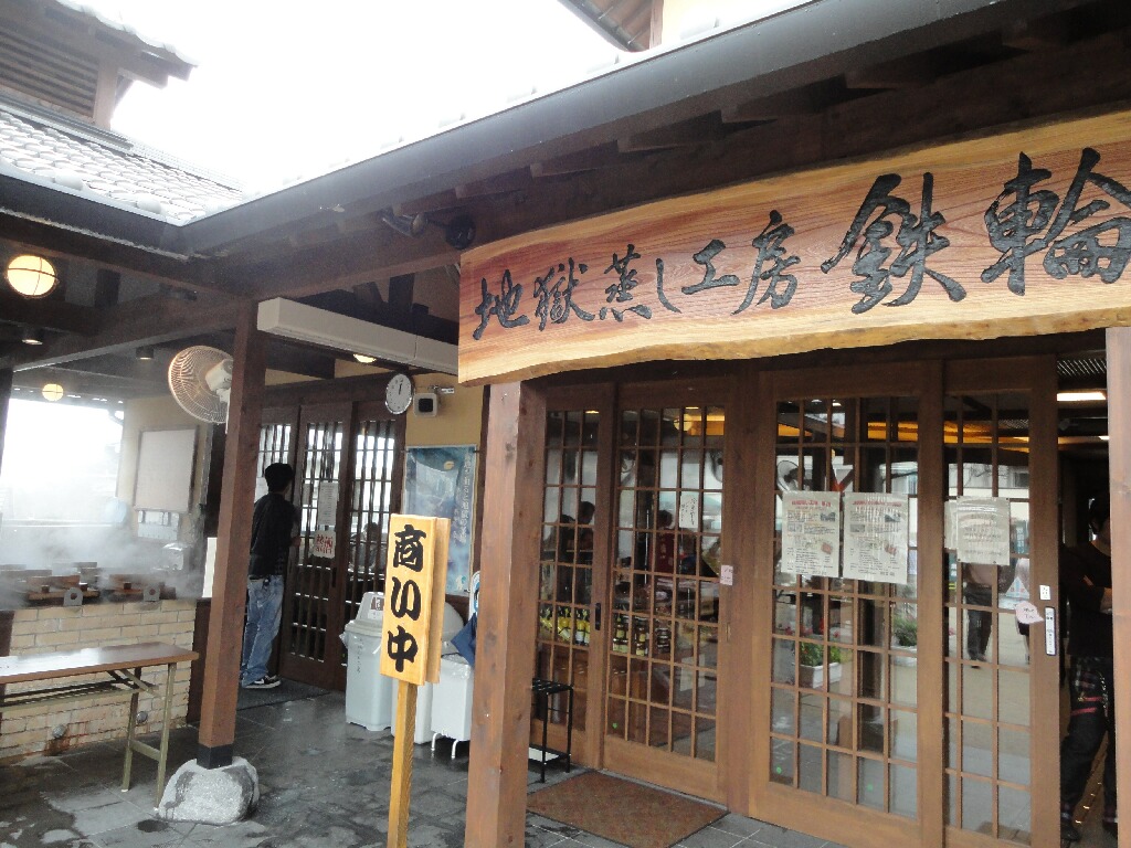 工房の横にはでっかい足湯と足蒸しがあってもちろんタダだし、この辺(鉄輪温泉界隈)って最近街並を整備してるらしくて立ち寄り湯とかたくさんあってちょいと散策するにはもってこいの場所でしたー。なんか妖しい芝居小屋とかあったし。