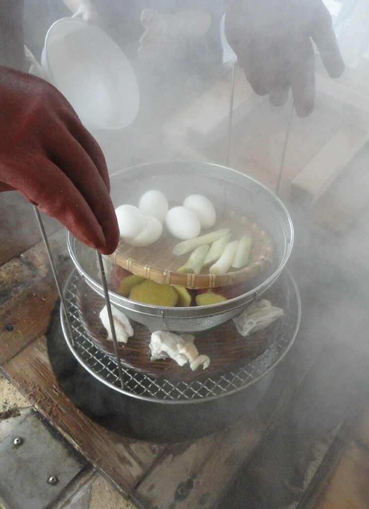 今回は自宅からさつまいもと卵とネギと鶏肉持参したんであとは¥500払ってちゃちゃっと調理してもらって蒸しあがるの待つだけ。