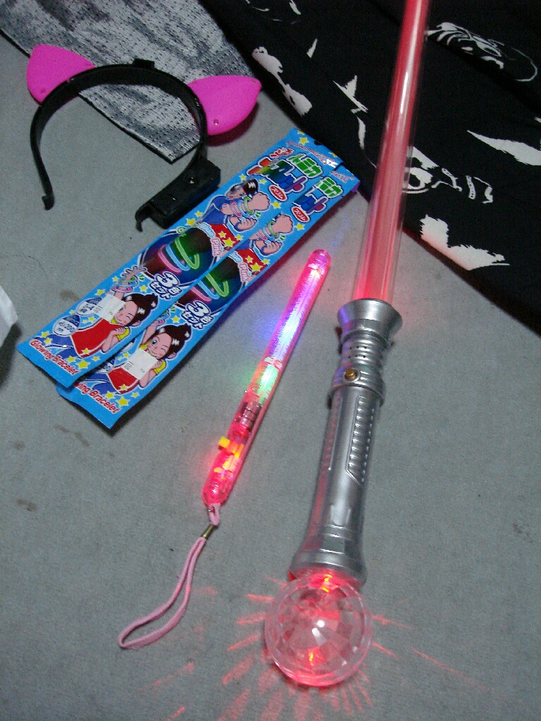 何がイイって、放生会と比べて丁度いい規模だし、人もあんまり多くないし、何より夜店の単価が安い!ものすご~く良心的な値段。ちなみに本日の夜店メニューは焼鳥1本¥200、フランクフルト¥150、かき氷¥100、ヨーヨー釣り¥100。安い!!放生会のあの鬼のような値段はなんじゃ!?神様のお膝元であのボッタクリよう!この夏越祭ってプロのテキ屋さんじゃなくて、福岡市内のいろんな企業が協賛しつつPRも兼ねて夜店を出してるようなので、商売っ気があまりない、というか地元のユルいお祭感覚ですごくいい雰囲気だす。今日は最終日でしかも終了ギリだったんで、ほぼたたき売り状態だったし。ちなみに光りものもなんでも安かったよ。ビームサーベル¥500で買うた(笑)ペンライトは¥150.安い!!このぐらいの値段なら我に返っても後悔はないゼ!