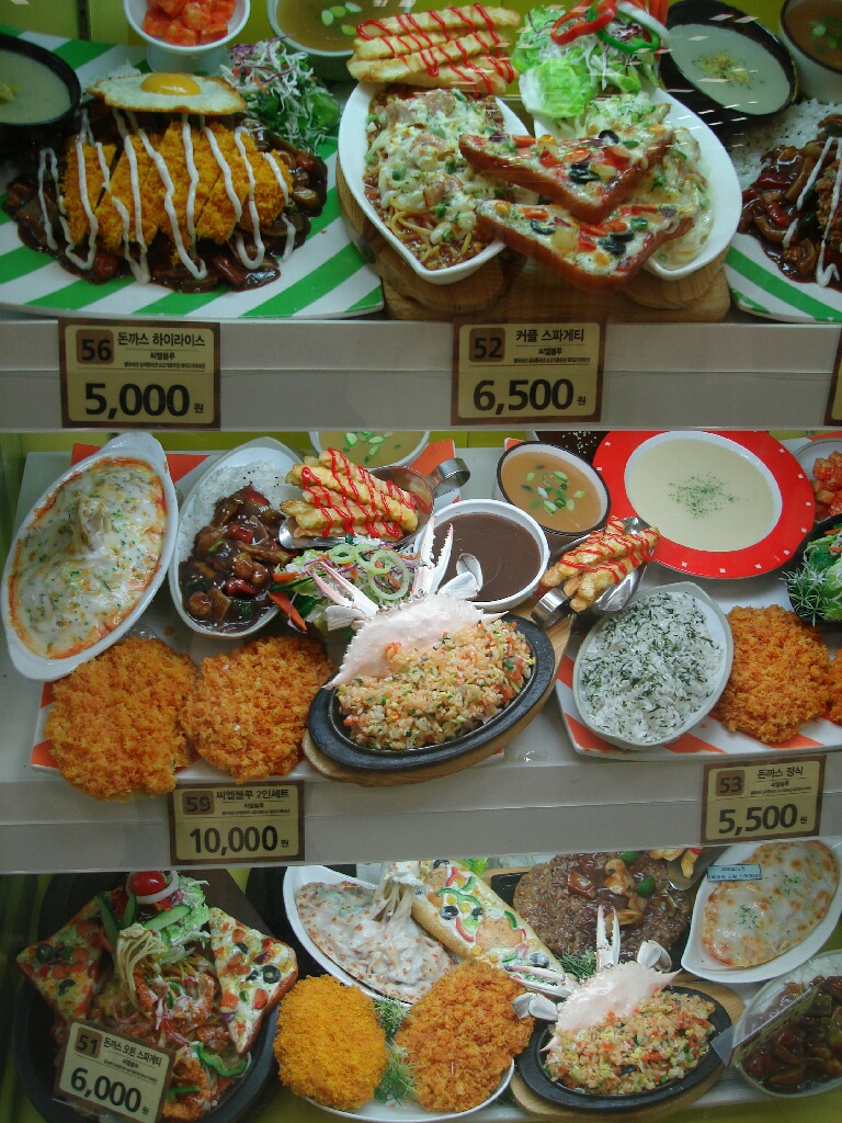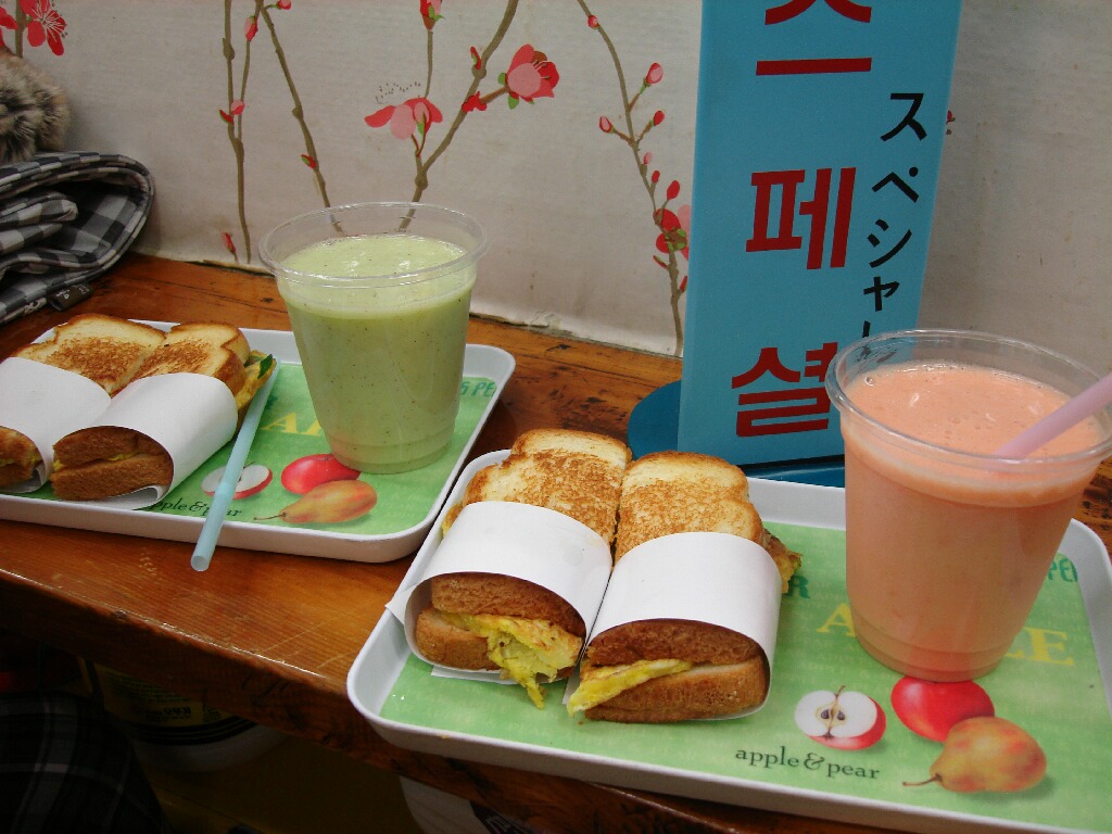 2日目の午前中にあっちの、いわゆるディスカウントストアのホームプラスに行ったけど、韓国の家庭の一般的な生活用品とか食材が安くて揃っててすっごい楽しい!ホットッミックスとかコチュジャンとか伝統茶とか、欲しいものは土産屋で買うより断然安くてオススメ。ついつい歯磨き粉とか生活用品にも手を出しちまった(笑)だってこっちで買うより安いし。荷物の量考えんでいいならもっと買い込むのにな~。で、日本と同じように、このホームプラスの中にもレストランやフードコートがあるんですが、このフードコートのメニューの食サンが凄まじい!衝撃写真!