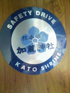 で、数年前に熊本城内にある加藤神社(清正公をお奉りしてます)に参ったとき、意外とステッカーが良かったんで(ブルーのメタリックで)ついつい買って保管してたんですが、車内に丁度張れるスペースがあったんで会社の帰り、駐車場でペタっと張りました。